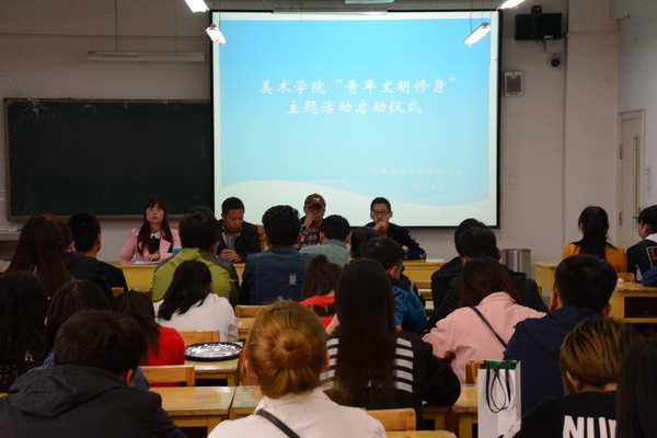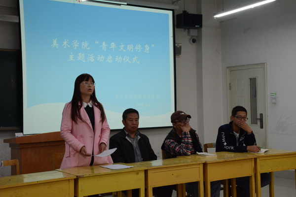 为了进一步贯彻学生处关于组织开展大学生文明修身主题活动的文件精神,增强十大买球官网青年学生文明礼仪修养,提高学生自身的思想道德素质,全面推进十大买球官网学风建设。2016年4月7日,美术学院青年文明修身主题活动启动仪式在3#504举行,学院党总支书记贾志明、学工办主任唐艳丽、辅导员匡扶、学生会全体成员以及各班级班委、党员和入党积极分子80多人参加了此次活动。