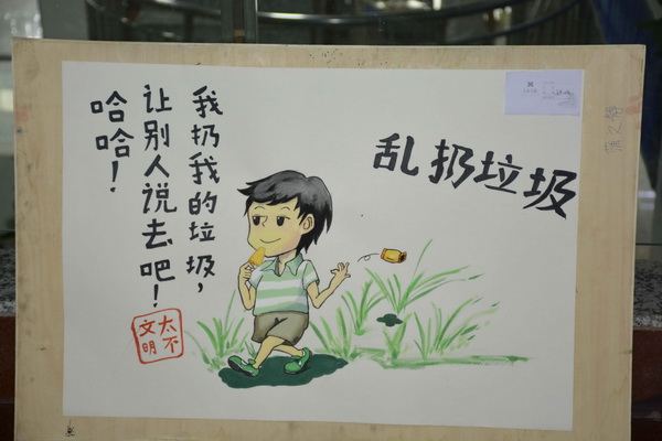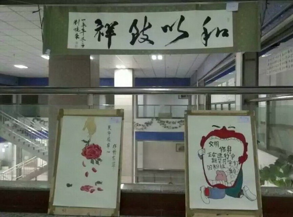 本次书作品画展,由美术学院学生会组织2015级各班级同学,结合班级主题活动创作“文明修身”主题漫画20多幅,本学院参加书法协会的同学撰写书法作品20多幅,在学院分团委老师的指导之下,遴选共展出书画作品40多幅。我学院展出的“拒绝不文明”漫画受到广大师生的一致好评,纷纷表示在以后的生活中要以不文明行为为诫,严格要求自己。