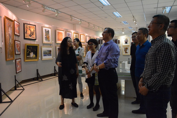 副校长郑伟强和王克太参观了展览,他们兴致勃勃地听取讲解,和美术学院教师互动交流,对美术学院的工作和同学们的创作作品给予了充分肯定。