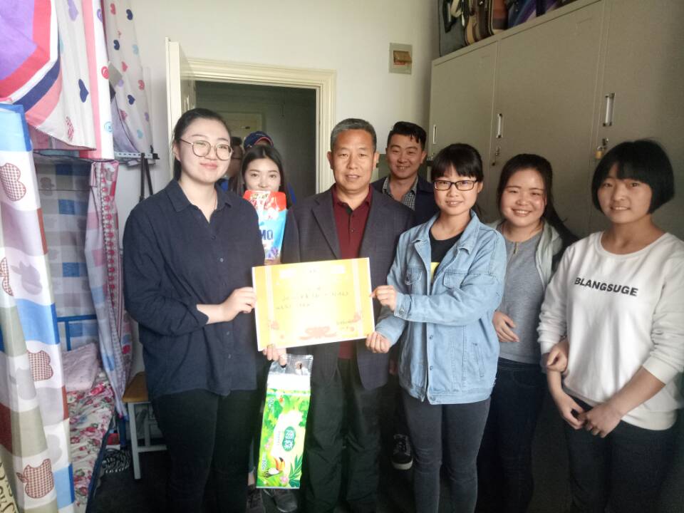 为了体现学院领导对学生的关怀,本次颁奖大会特意以领导走访学生宿舍的形式开展,在走访过程当中贾书记与各宿舍学生面对面对话,关心询问学习、生活情况,表扬并鼓励学生保持内务卫生,打造有特色、特点的宿舍环境,为学院的宿舍文化建设树立榜样。同时书记再次强调宿舍安全问题在学生管理方面的重要性。