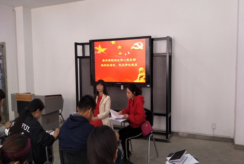 2018年3月22日,美术学院学生第二党支部在北校区环境设计实训中心,召开组织生活会和党员民主评议工作。会议由支部书记宗丹丹主持,学生第二党支部全体党员和各班级团支部书记参加了会议。