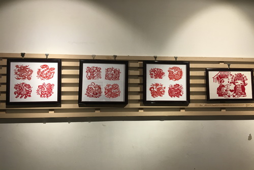 在此次交流展中,共展出以甘肃民间美术元素的作品90余幅,学生作品以甘肃的剪纸艺术为元素,以民间祝福、吉祥图案、龙凤图腾为主要题材,创作出一幅幅精美的剪纸作品;同时通过剪纸的形式把皮影、彩陶、戏曲脸谱、经典工笔画局部元素作为创作题材,丰富了剪纸艺术的素材和表现形式。在综合能力运用方面,学生以马勺脸谱、戏曲脸谱、面具等元素为题材,创作出形式多样的文创产品。本次展览作品样式丰富多样,令人耳目一新。