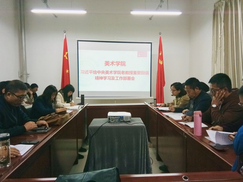为了认真学习领会、全面贯彻落实习近平给中央美术学院周令刊等8位老教授重要回信精神,推进新时代教育改革发展,落实立德树人根本任务,加强和改进学校美育工作,美术学院于10月18日下午召开习近平给中央美术学院老教授重要回信精神学习及工作部署会,会议由贾志明书记主持,全体教职工参加。