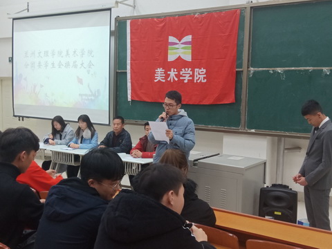 2018年11月6号晚上7∶30,美术学院分团委在北校区综合楼407召开学生会换届大会,美术学院党总支书记贾志明,学工办主任唐艳丽老师,辅导员郭子弘老师,张瑶老师,全体学生干部、各班级班干部以及18及全体同学参加了活动。大会以党总支书记贾志明的精彩演讲拉开了序幕。