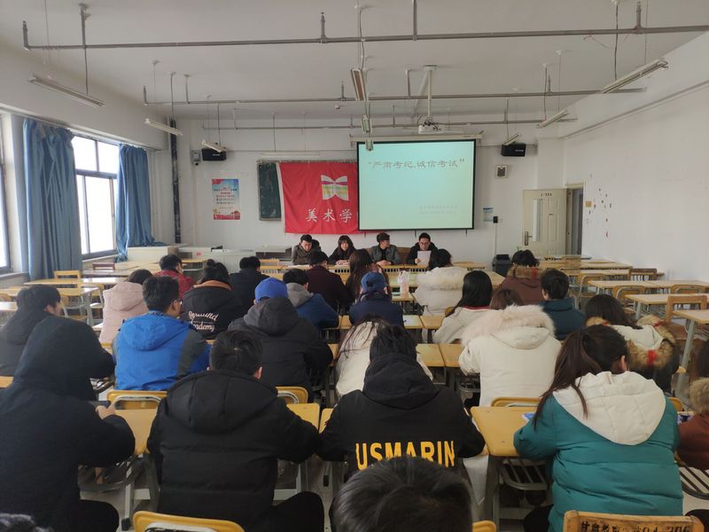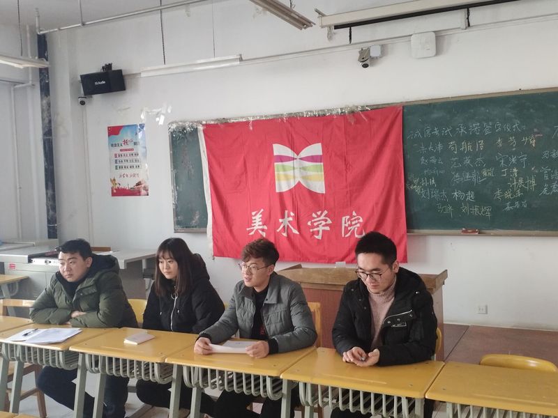201918日,美术学院学工办、分团委学生会在南校区1-504召开本学期诚信考试动员大会。大会由分团委负责人张瑶老师主持,辅导员郭子弘老师、学生会全体学生干部参会。