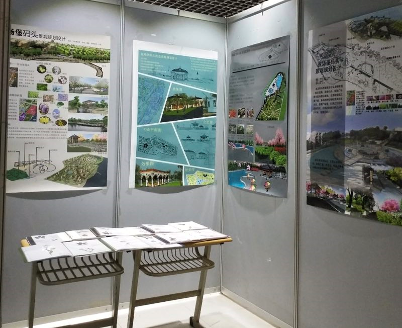 2019年5月6日至13日,美术学院2016级环境设计专业《现代景观设计理论》课程作业交流展在美术学院五楼展厅展出。此次展览共展出学生课程作业作品40余件,作品内容为盐场堡码头景观规划设计,同时展出植物标本采集册。盐场堡码头景观规划设计在场地调研基础上,对基地自然条件、文化背景充分探究,设计出符合兰州城市特色和地域文化的盐场堡码头景观。