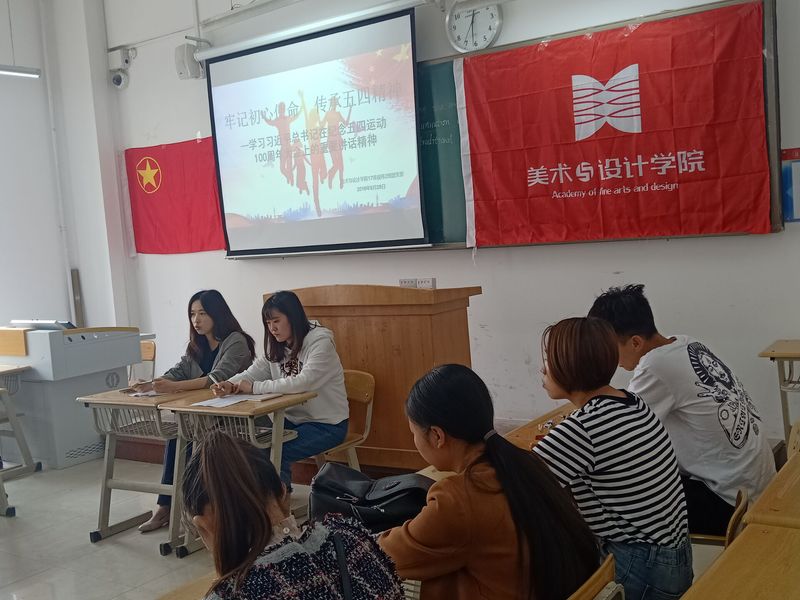 为学习贯彻落实习近平总书记在纪念五四运动100周年大会上的重要讲话精神,激励广大团员青年传承五四精神,美术学院于5月29日中午12:30在3-207教室,组织开展“牢记初心使命、传承五四精神”主题团日活动。校团委刘嘉璐老师出席,美术学院分团委负责人张瑶、2017级视觉传达2班团支部、分团委学生会干部代表参加了本次活动。