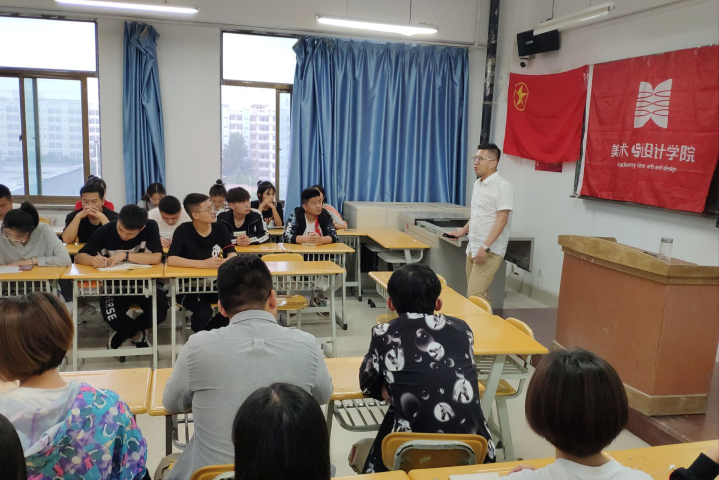 为推动学院学风建设,充分激发和调动学生学习主体作用,发挥学生干部带头作用,落实落细学校领导干部联系班级等各项举措,2019年6月26日晚上7:00,校团委孙亮书记走进美术学院2017级视觉传达一班、二班团支部,开展“促学风 迎评估”主题宣讲活动。校团委孙亮书记,视觉传达设计专业班主任陡晓洮老师、学生会全体干部、16、17、18级各班班委参加了本次活动。