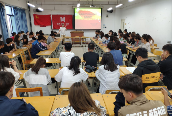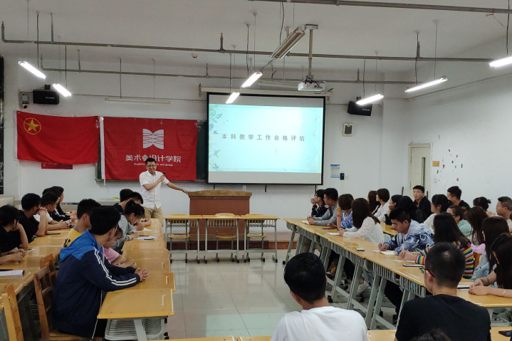 为推动学院学风建设,充分激发和调动学生学习主体作用,发挥学生干部带头作用,落实落细学校领导干部联系班级等各项举措,2019年6月26日晚上7:00,校团委孙亮书记走进美术学院2017级视觉传达一班、二班团支部,开展“促学风 迎评估”主题宣讲活动。校团委孙亮书记,视觉传达设计专业班主任陡晓洮老师、学生会全体干部、16、17、18级各班班委参加了本次活动。