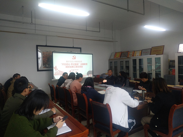 2019年10月21日中午,十大买球的正规网站党总支在学院会议室515召开“不忘初心 牢记使命”主题教育调研成果交流会,大会由党总支书记贾志明主持,学院领导班子成员、部分党员和积极分子参加。
