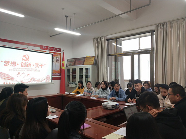 会议开始,支部书记祁敏轩领学习近平总书记在关于“中国奇迹”论述上给出三个关键词:“梦想”、“创新”、“实干”。明确指出我们当代学生党员应该不忘初心,牢记使命,深刻学习习近平总书记提出三个关键词的含义,懂得“梦想是激发活力的源泉。伟大梦想,引领伟大的民伟大的民族,必有伟大梦想;伟大梦想,引领伟大的民族。”加强努力学习创新,坚持创新学习方式方法,提高学习效率。作为新时代党员中的一份子,我们要以不断学习为主要目标,充分理解学习中国精神和中国力量,崇尚实干、狠抓落实”撸起袖子加油干。“不驰于空想、不骛于虚声”引领新时代的中国行稳致远。