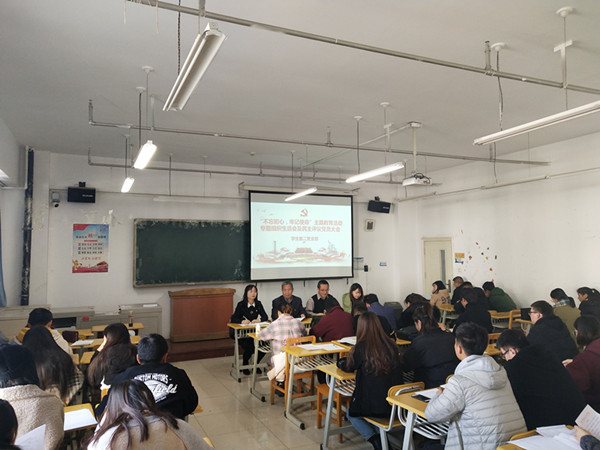 根据学院“不忘初心、牢记使命”主题教育工作安排,12月6日中午,学院学生第二党支部在南校区1—504教室召开组织生活会暨民主评议党员大会。会议由支部书记祁敏轩主持,学院党总支书记贾志明、团学办主任唐艳丽,支部全体党员、预备党员和入党积极分子代表参加会议。