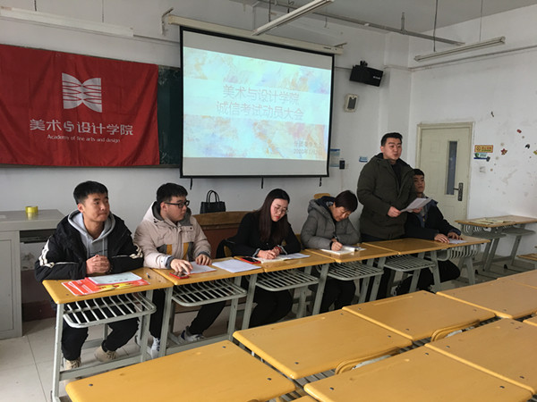 为树立“文明守纪 诚信应考”的纪律观念,2020年1月2日中午,十大买球的正规网站团学办、分团委在1-504教室召开诚信考试动员大会。学院副院长李富红,辅导员郭子弘、李晶晶及全体学生干部参加了大会。
