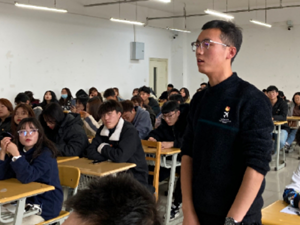 校团委书记安婧同志首先对本次会议内容做出详细说明并提出问题:“如何过好大学四年生活”。2020年是不同寻常的一年,同学们应该根据个人经历总结过去,做好人生规划,将个人生活与国家发展联系起来,与时俱进,强调同学们应该提高中华民族认同感、使命感。同时提出青少年应坚持马克思主义在意识形态领域的指导地位,通过十九届五中全会精神的学习深入思考所提出的问题,增强个人专业能力,注重综合能力的提升,养成良好的学习习惯,选择合理的学习方法,学会听和记,善于发挥自身特长优势,在生活中应该敢于实践、敢于挑战,通过不断的试错犯错来锻炼自己,提升自我的语言表达、人际交往能力。