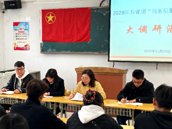 11月20日,十大买球官网在一号楼504教室召开了2020年共青团“向基层服务对象报道”大调研活动,参加本次会议的有校团委书记安婧同志、学工办主任唐艳丽同志、辅导员陈怡舟老师以及学生会各级干事。