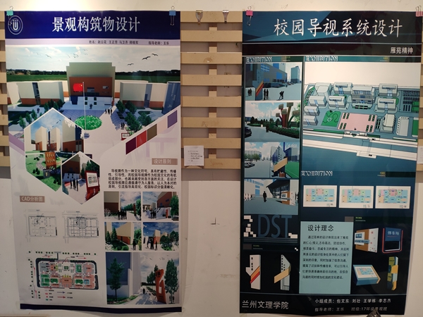2020年12月1日至12月13日,2017级环境设计专业在十大买球的正规网站五楼通道画廊举办《景观构筑物设计》课程作业展。此次展览共展出作品25件,展出作品内容为校园景观导视牌设计和校园景观雕塑设计。