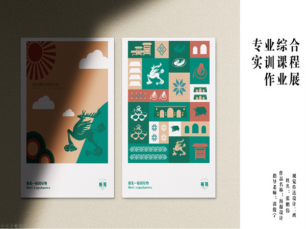 《专业综合实训》是视觉传达设计专业的重要专业课程。课程内容主要包含三个方面内容:品牌形象设计、商品包装设计、文创产品设计等实训项目。其中品牌形象设计项目包含品牌标志设计、品牌IP形象设计、品牌产品包装设计、图形延伸设计、插画设计等内容。选题要求学生以甘肃少数民族传统文化出发点,挖掘优秀文化元素,结合现代设计方法理念为少数民族地区开发地方食品、工艺品品牌的设计在项目实训中,学生既感受少数民族文化的优秀成果,提升了同学们对甘肃文化自信,也体会到现代设计前沿知识的重要性。