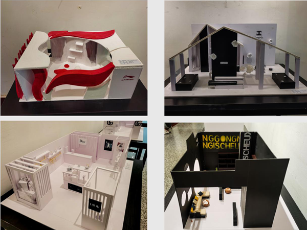 此次展览作品含品牌特装展台空间平面立体示意图,还有精确到毫米的严谨模型。一件件作品包含着同学们对环境、空间、艺术、品牌的认知体验与设计感悟,也表现了同学们对未来空间的设计与展望。