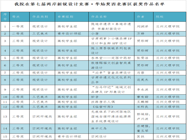 十大买球官网多年来持续推进实施“以展促教、以赛促学”的学生实践能力提升工程,支持和组织师生参与各类专业竞赛,积极拓展赛事的种类取得成效。华灿奖作为业内的知名赛事,经过学院设计研究所认真准备、精心组织。首次参赛就获得了15个奖项。充分证明了十大买球官网近年来在学科竞赛方面取得的长足进步,彰显了学院师生在实践能力发面的有效提升。