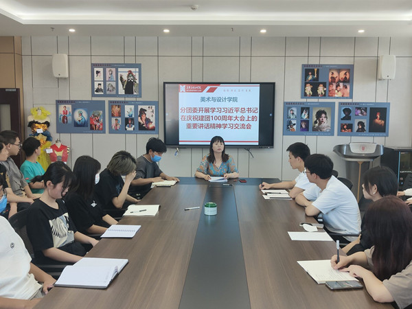 会议认真学习了习近平总书记在庆祝建团100周年大会上的讲话原文,使广大青年明确了共青团在中国共产党百年征程里所扮演的角色及承担的责任,更加深入的理解共青团的初心使命和中国共产主义青年团成立的意义。21绘画二班杜雅凡、21戏剧影视班汤喜强、21视觉传达设计一班金雪三位学生代表发言交流,畅谈自己的学习感悟,大家纷纷表示,作为新时代的中国青年,生逢其时、重任在肩,我们一定要坚决做到“党旗所指就是团旗所向”,为党和人民事业勇毅前行、永续奋斗、不负韶华。