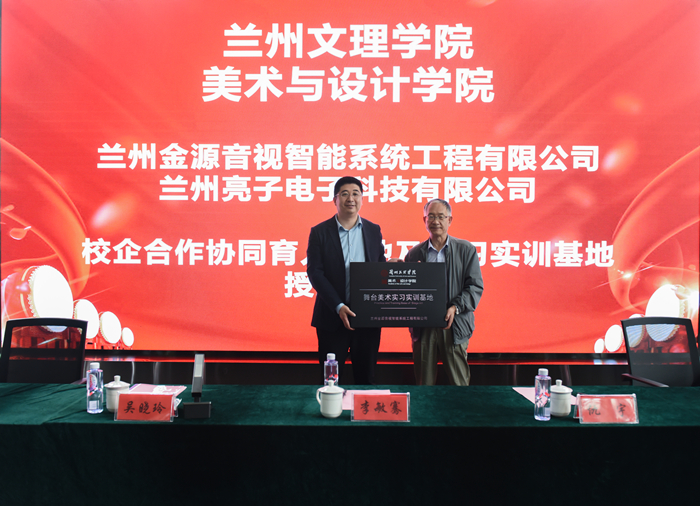 活动仪式上,副校长李敏骞与兰州金源音视智能系统工程有限公司董事长陈宝金、兰州亮子电子科技有限公司董事长万国灵双方“实践教学基地”授牌。吴晓玲院长与陈宝金董事长、万国灵董事长签订“校企合作协同育人基地及实习实训基地”协议。