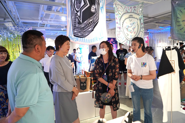 甘肃省委组织部副部长、省人力资源和社会保障厅党组书记、厅长周丽宁一行领导参观了我校师生成果,在十大买球的正规网站视觉传达设计专业负责人樊华老师的介绍下各位领导对十大买球的正规网站参展的文创产品及产教融合的双创工作给予高度肯定。