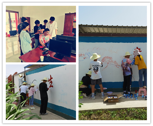 7月9日,在带队老师唐艳丽的带领下,同学们一早就来到实践场地,快速进入工作状态,开始测量墙面、挑选绘画内容、潜心设计画面效果,充分发挥专业特长,用线条勾勒出一幅幅生动的文化墙。此次活动以“乡村振兴”“农耕文明”“中国梦”和“社会主义核心价值观”为主题,突出本专业的优势,以墙绘为载体,倡导文明,宣传公益,推动乡村建设,美化村容村貌。
