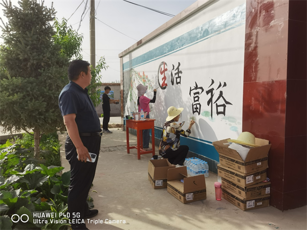 志愿者们正在绘制乡村振兴十六字方针“治理有效”