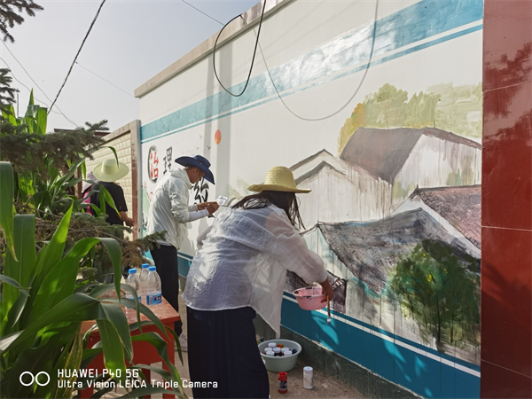 志愿者们正在描绘乡村振兴十六字方针“生态宜居”