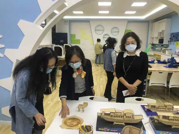 雁东路小学副校长张军玲代表学校迎接团队的到来并引导参观了雁东路小学校园及美术工作坊、科技室等特色工作室。随后,双方在学校会议室就美育浸润活动如何推进、实施进行了座谈。吴晓玲院长对十大买球的正规网站的发展历程、特色专业、师资力量、人才培养情况做了介绍,并表达了积极推动“美育浸润计划”的愿望,希望通过与雁东路小学的携手合作,提高双方师生的专业能力和学院服务社会的水平。张军玲校长介绍了雁东路小学美术课程建设情况及美术社团活动的特色,美育推行方面发展的基础,面临的问题以及美术教研组教师们的需求,期待“美育浸润计划”能够为学校美育课程建设给予帮助、为学生提供更多、更好的开展美育的条件。