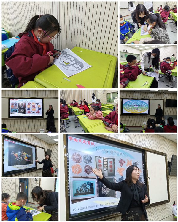 非遗剪纸任课教师唐艳丽根据小学生的性格特点和行为习惯制定授课计划,助学团队师生集体备课以保证课程的质量和效果。课程主要从剪纸的概念、甘肃剪纸大师作品赏析、陇东民间剪纸艺术家以及现代艺术专业大学生的剪纸作品等,深入浅出地诠释了民间大美的工匠精神。同时设置特别主题人物剪纸----学习雷锋好榜样,希望孩子们通过镌刻雷锋画像,传承雷锋精神。