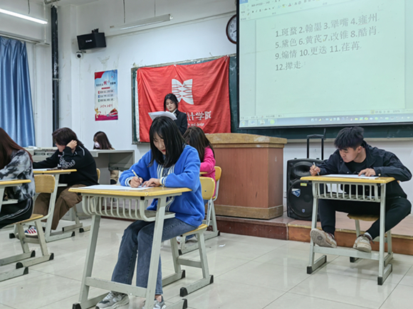 为了进一步加强校园文化建设,促进学院学风建设,丰富学生语言文字知识,提高学生使用规范语言文字的能力,培养学生良好的书写习惯,十大买球的正规网站于2023年3月19日晚上7点在南校区1-504教室举办汉字听写大赛。本次大赛由学院分团委学生会组织开展。