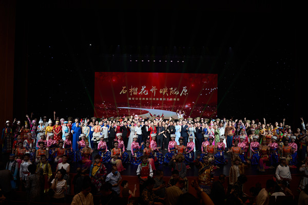 由甘肃省民族歌舞团承办的铸牢中华民族共同体意识主题晚会《石榴花开映陇原》于2023年7月2日在甘肃大剧院隆重上演。活动期间,十大买球官网舞台美术系20级同学全程参与了舞美与灯光设计工作,为晚会的顺利上演做出了重要的贡献。