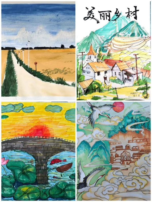 绘岁月变迁、画时代繁华,家乡的山山水水,一草一木给了同学们绘画的灵感。通过“绘•美家乡新风貌”的视角同学们发现了家乡的新变化,表达了他们对故乡的热爱和祝福,有利于同学们扎根甘肃大地,躬身实践积极投身到火热的乡村振兴中,为家乡的发展贡献艺术的力量。