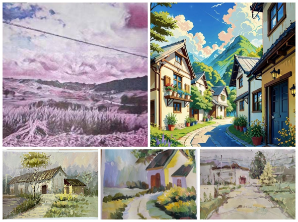 (2022级视传2班王谢军作品《陇南市武都区马营镇》、李敏琪作品《甘肃省陇南市武都区东江镇》、贾贻婷作品《甘肃省陇南市武都区汉王镇的田野》、何瑞强作品《甘肃省陇南市成县陈院镇龙门村》、杜婷婷作品《甘肃省陇南市武都区汉王镇的田野》)