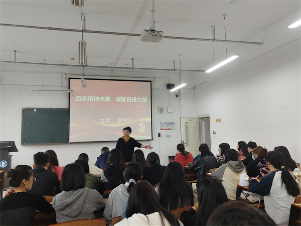 开班仪式结束后,由马克思主义学院曾令琼教授以“百年精神丰碑凝聚奋进力量”为题进行了本次培训班的首场讲座。期望同学们通过学习坚定理想信念,遵守党规党纪,增强党员意识,为党支部接收新党员做好准备工作。