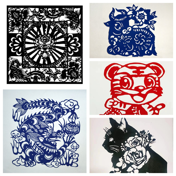 剪纸的乐趣在于妙手生花,同学们从不会折纸、不会剪刻、不会处理细节、到慢慢熟悉剪纸艺术的各种奇思妙想的构图形式、中国传统文化折射到剪纸语言中的表现形式,以及民间剪纸艺术所反映出的老百姓的生活情趣,同学们在剪纸艺术的海洋中徜徉,不断地吸吮着中国民间艺术的营养。