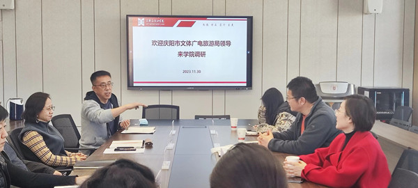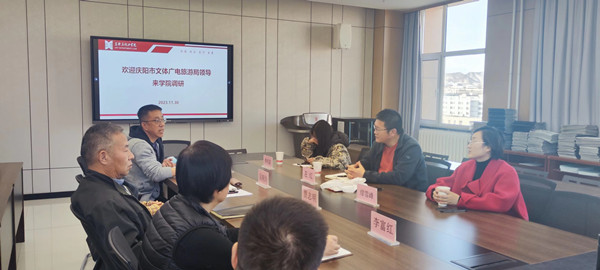 11月30日下午,庆阳市文体广电旅游局左红副局长、非遗科科长李天蓝和文化馆副馆长缪雪峰一行来十大买球官网调研座谈,学院领导和各系主任参加座谈。