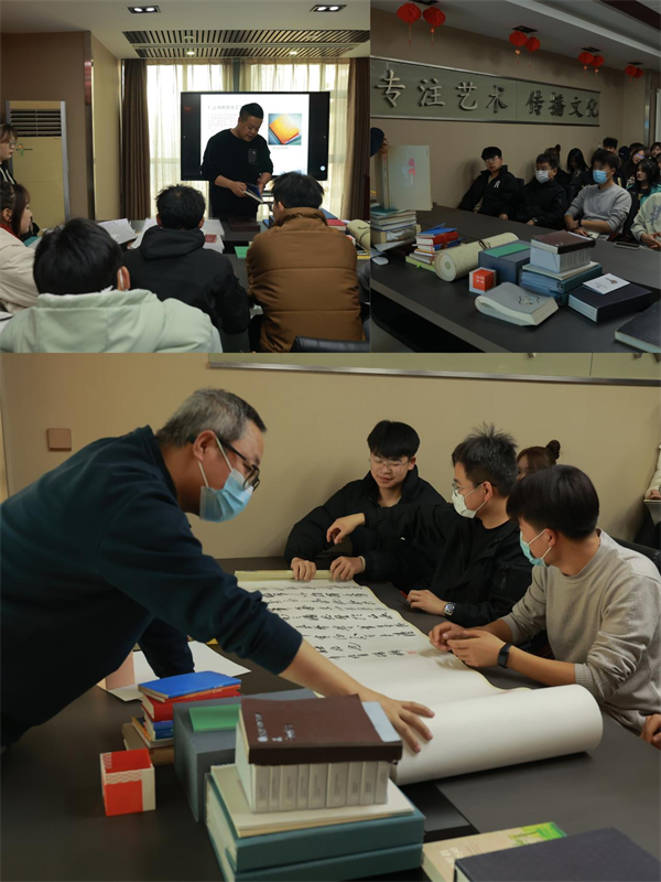 同学们到达大雅文化艺术有限公司后,受到了公司方面热情的接待。首先公司总经理刁晓刚先生对郭俊宁老师及全体学生一行表示热烈的欢迎,并对培训课程内容作了简单介绍。随后制作部经理马德军老师以设计师应该具备的基本素养”开始,逐一讲解了书籍的多种装帧形式、各种制作工艺以及如何将各种材质、工艺完美与一本书结合的过程,赢得了同学们的一致称赞。通过马老师的讲解,同学们了解设计师们是如何进行创意构思和实际设计的,进一步体会到了一个优秀设计方案对于提升书籍价值和吸引力的重要性。在短暂休息之后,制作部调色师梁剑鸣老师以“简析图形图像后期制作”为主题内容,分享了自己职场上的工作经验并现场实操“化腐朽为神奇”的调色过程赢得了学生们的阵阵掌声,激发了对印刷图像设计的兴趣和热情。最后由业务部经理杨得宏老师以“和书籍印刷相关的那些事”为主题内容,对印刷常识、制作工艺、易陷误区为同学们一一做了讲解。并结合各种不同装帧形式、制作工艺、纸张材质的应用进行分析,还向同学们展示了大雅文化公司制作的各类获奖书籍,同学们通过阅览优秀作品,感受到设计师的创意和才华,也体会到印刷工艺的复杂性和多样性。