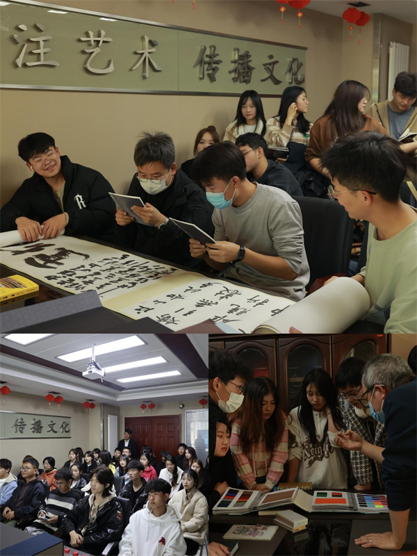 同学们到达大雅文化艺术有限公司后,受到了公司方面热情的接待。首先公司总经理刁晓刚先生对郭俊宁老师及全体学生一行表示热烈的欢迎,并对培训课程内容作了简单介绍。随后制作部经理马德军老师以“设计师应该具备的基本素养”开始,逐一讲解了书籍的多种装帧形式、各种制作工艺以及如何将各种材质、工艺完美地与一本书结合的过程,赢得了同学们的一致称赞。通过马老师的讲解,同学们了解了设计师们是如何进行创意构思和实际设计的,进一步体会到了一个优秀设计方案对于提升书籍价值和吸引力的重要性。在短暂休息之后,制作部调色师梁剑鸣老师以“简析图形图像后期制作”为主题内容,分享了自己职场上的工作经验并现场实操“化腐朽为神奇”的调色过程,赢得了学生们的阵阵掌声,激发了对印刷图像设计的兴趣和热情。最后由业务部经理杨得宏老师以“和书籍印刷相关的那些事”为主题内容,对印刷常识、制作工艺、易陷误区等为同学们一一做了讲解。并结合各种不同装帧形式、制作工艺、纸张材质的应用进行分析,还向同学们展示了大雅文化公司制作的各类获奖书籍,同学们通过阅览优秀作品,感受到设计师的创意和才华,也体会到印刷工艺的复杂性和多样性。