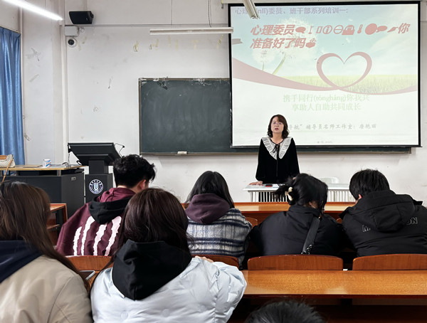 培训会中,唐老师从心理委员的工作意义、工作职责、心理健康与咨询常识、如何做好心理委员工作这四个方面进行详细讲解。通过PPT内容的展示,使各班心理委员进⼀步明确班级心理委员的工作内容,同时普及相关心理知识,以及如何去解决同学们的心理问题和面对不同心理隐患时应当采取的不同⼼理援助。培训会中着重对“五心”进行了了解和学习:热情服务讲爱心、人际和谐受欢心、善于助长有锦心、探索自我能知心、保守秘密被放心。