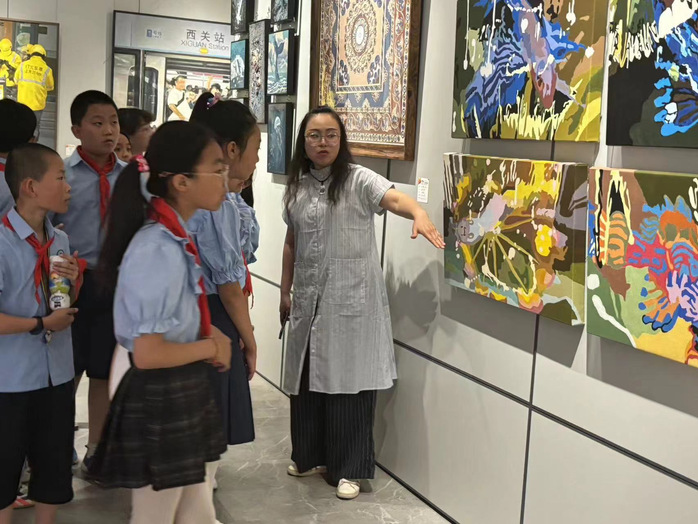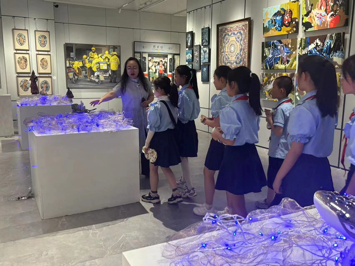 为了进一步落实雁东路小学校美育浸润活动实效,培养学生健康的审美观念和能力,启迪智慧,塑造美的心灵,陶冶高尚的情操,促进智力和身心健康和谐的发展,我校于2024年6月12日组织、接待雁东路小学五位教师带领的数十名热爱艺术的五年级学生在我校参观美术与设计学院2024届毕业创作展、聆听讲解,感受艺术之美。