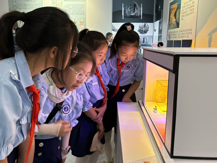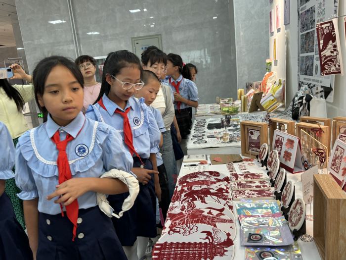 接下来师生们一同参观了环境设计展区、视觉传达展区,孩子们从一件件代表着兰州特色的文创作品中,深刻意识到视觉传达的广泛应用和深远影响。从设计理念到图形制作、产品生产,从广告创意到用户体验设计,每幅作品都汇聚了无数的创意和思想。孩子们纷纷表示参与这次观摩实践,将会使他们更全面、更深入地理解艺术的本质和应用。