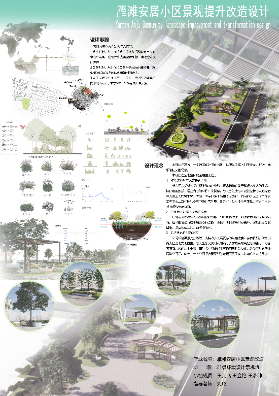 本次课程是同学们对兰州雁滩安居小区内景观空间的深入考察与改造设计成果。通过实地考察,与小区居民、物业管理人员等进行沟通对小区内的景观空间现状与居民期待有了更加直观和深入的了解为设计的展开提供了依据依托整个设计过程,同学们学会了如何将理论知识与实践相结合不仅提高了自己的专业技能和综合素质,还为未来的职业发展奠定了坚实的基础。