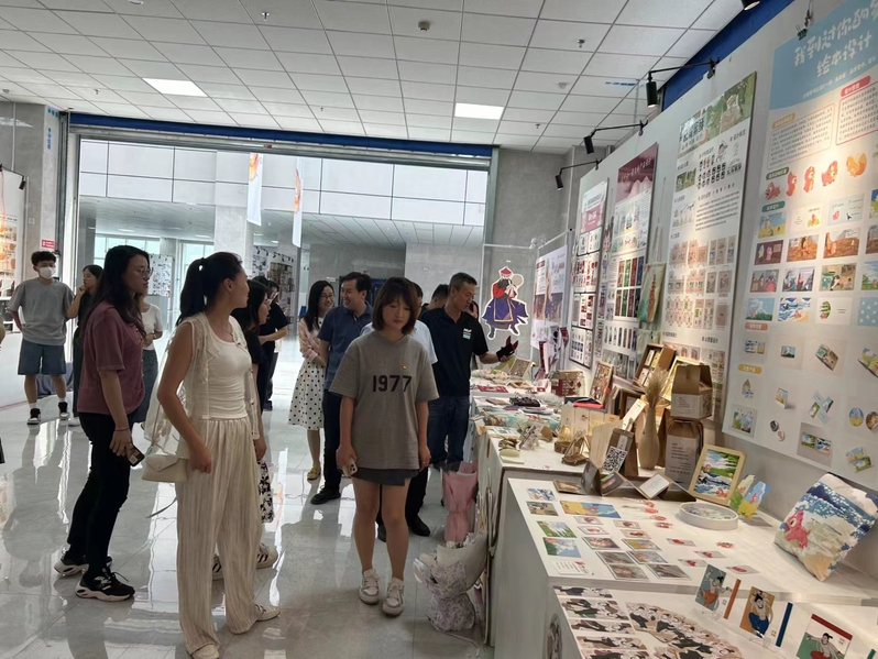 6月27日下午,十大买球的正规网站学生党支部与机关第八党支部共同开展了“创新支部联动 同赏艺术之美”的结对共建主题实践活动。活动中师生党员在文昌楼一楼展厅共同参观毕业展作品并现场深入探讨作品中的家国情怀、守望初心以及传统文化元素在艺术作品中的表达,让育德于美的设计初心在师生党员的探讨中更加深刻和牢固。作品展上有环境设计、视觉传达设计、戏剧影视美术设计和绘画四个专业的作品,无论是中国画、油画、工艺美术作品还是室内设计、景观设计、文创设计、品牌设计、包装设计、舞台设计、舞台灯光设计、舞台服装与服饰设计作品,从设计思路和表达形式不乏传统与现代相结合的优秀作品,创作更多贴近生活,体现心系家国、爱国爱党爱社会主义情怀。
