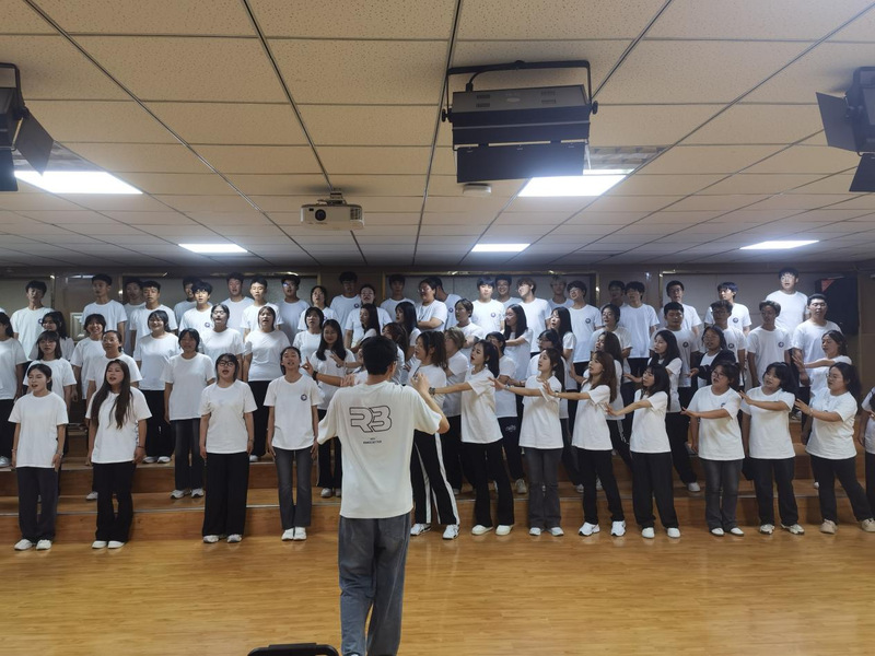 十大买球官网参赛队伍由2024级视觉传达设计1、2班和戏剧影视美术设计专业班共计90人组成,学院聘请音舞学院专业教师副教授翟书艺为指导老师,学生甘盛世为合唱指挥,在学院分团委、学生会的努力之下,经过一周的辛苦排练,十大买球官网以《上春山》和《祖国不会忘记你》两首曲目参与比赛。