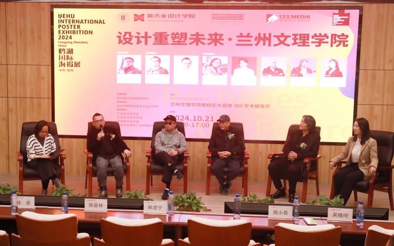 2024鹤湖国际海报展宣讲活动中,主讲嘉宾韩湛宁先生和周小良先生为师生们做了精彩的主题演讲,通过大量详实设计案例,诠释“设计重塑未来”主题。在对谈环节,嘉宾围绕设计行业现状和设计教育展开了深入探讨在场的师生积极参与其中,他们认真聆听嘉宾的发言,积极参与互动交流,现场气氛热烈
