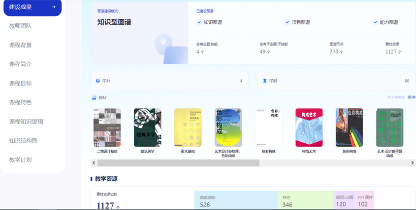 “二维设计基础”为教育部首批国家级一流本科课程。此次课程知识图谱的建设,在原有线下课程的基础上,借助知识图谱,进行了结构化的教学改革,通过展示知识之间的关联和层次关系,帮助学生更好地理解和掌握课程内容,提高学习效率。同时,为学生提供了丰富多样的教学资源,如视频教程、作业案例、AI问答等,方便学生随时随地学习,掌握自己的学习进度和薄弱环节,及时调整学习策略,从而制定个性化的学习计划。同时,数智化平台可以实时记录学生的学习数据,为教师提供准确的评估依据,优化教学方案。这种可视化的课程学习过程不仅增加了学习的趣味性,还让学习路径变得清晰可见。该课程充分利用“人工智能+教育”的新模式,挖掘学习者的潜能,助力学生塑造自我、实现自我价值。