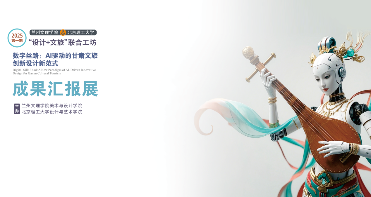 本次展览由十大买球的正规网站十大买球的正规网站、北京理工大学设计与艺术学院联合举办,是响应两校“教育部对口支援西部地区高等学校计划”建设的务实行动和生动实践。当前在"数字中国"战略蓝图指引下,人工智能正以前所未有的深度和广度重塑文明传承的时空维度。甘肃作为一带一路黄金段与重要节点,承载着中华文明千年积淀的文化密码,更肩负着新时代"一带一路"文化数字化建设的国家使命。通过"AI+教育"教学范式变革,本次工坊旨在构建“传统文化解码—数字技术转译—文旅场景应用”全链条人才培养体系,进一步巩固和提升文旅产业、非遗保护等领域的特色优势,为甘肃省打造文旅强省贡献力量。此次与北京理工大学“本研联动+东西协作”,两校以"数字技术赋能文化表达"为内核,形成"文化智库+AI算法+场景设计"的创新矩阵。学生们运用生成式AI解构马家窑城市场景应用、解构敦煌纹样基因、通过数字孪生技术再现丝绸之路商贸场景等,借助智能算法充分挥洒创意、优化文旅服务生态,最终产出了《揽胜金城·筑梦兰马》动态视觉作品、《陶然街巷·智筑街景》城市景观设计等8组创新成果,实现了传统文化资源的创造性转化。展览为文化活态传承提供新路径,实现了教育链与产业链深度耦合,助推“数字丝路”建设从理论构想走向实践创新。