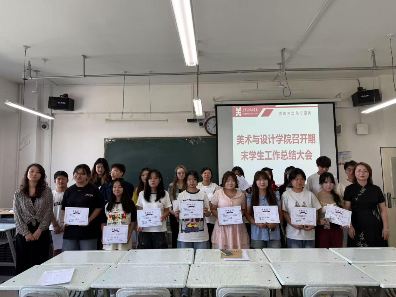 会上,唐老师对十大买球官网本学期学生工作进行了全面的总结。本学期团学办从日常工作着手,以班级团支部为抓手,在青年学生中开展理论学习和宣讲活动,提高全院学生的理论素养。紧抓学风建设,结合学院分团委“画”中有“话”的学院特色,开展“以美慧心 铸魂育人”美育特色品牌活动,彰显学院塑造学生健全人格和美好心灵的育人特色;有效开展丰富多彩的校园文化活动,展现美院学子积极向上的精神风貌,激发同学们爱校爱美院的情怀;强化学院学生管理和服务工作,塑造和谐奋进美院的师生风貌;注重学术交流,深化产教融合,推进实践教学等组织大小型活动20次,且活动成果显著。同时完成了今年的五四评优、团员和党员发展推优、2025届毕业生团关系的转接、西部计划的推荐以及校级社会实践团队的组织申报等工作。